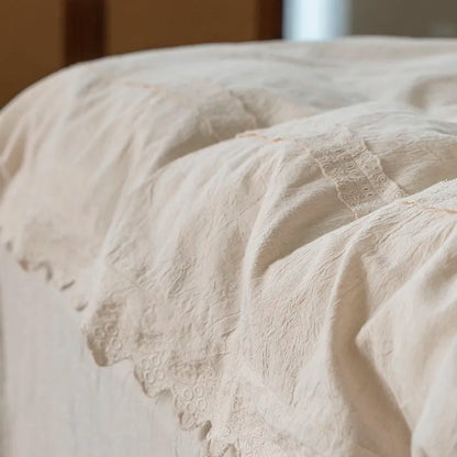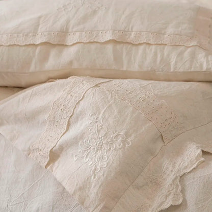 The Rustic Elegance Lace Bedding Set brings a timeless charm with its delicate lace accents and softly textured fabric. Designed to evoke a sense of serenity and warmth, this bedding set combines vintage appeal with understated sophistication. The intricate lace trim adds a subtle decorative touch, while the soft, breathable material ensures lasting comfort.